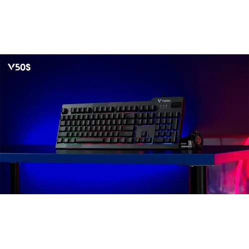 The Rapoo V50S Wired 104-Key Backlit Gaming Keyboard is a powerhouse peripheral engineered for gamers, coders, and multitaskers who demand precision, durability, and style. This full-size membrane keyboard delivers a tactile and responsive typing experience across its 104 keys, making it ideal for both competitive gaming and everyday productivity. Its wired connection ensures ultra-fast input with zero lag, giving users a reliable edge in high-stakes gameplay. Crafted with a sturdy aluminum alloy base, the Rapoo V50S offers enhanced durability and a premium feel, while its ABS keycaps are built to withstand up to 10 million keystrokes, ensuring long-term performance. The Rapoo keyboard strikes the perfect balance between portability and desk stability. The vibrant backlighting not only adds a dramatic flair to your setup but also improves visibility in low-light environments, making late-night gaming or work sessions more immersive. Designed for universal compatibility, the Rapoo V50S supports Windows, Mac OS, Android, iOS, and Chrome OS, allowing seamless integration across devices. Whether you're gaming on a PC, typing on a Mac, or navigating a tablet, this keyboard adapts effortlessly. The full-size layout includes a numeric keypad and function keys, catering to users who need complete control and convenience. Whether you're building a gaming rig or upgrading your workstation, the Rapoo V50S is a smart investment that combines performance, aesthetics, and cross-platform versatility.Specification